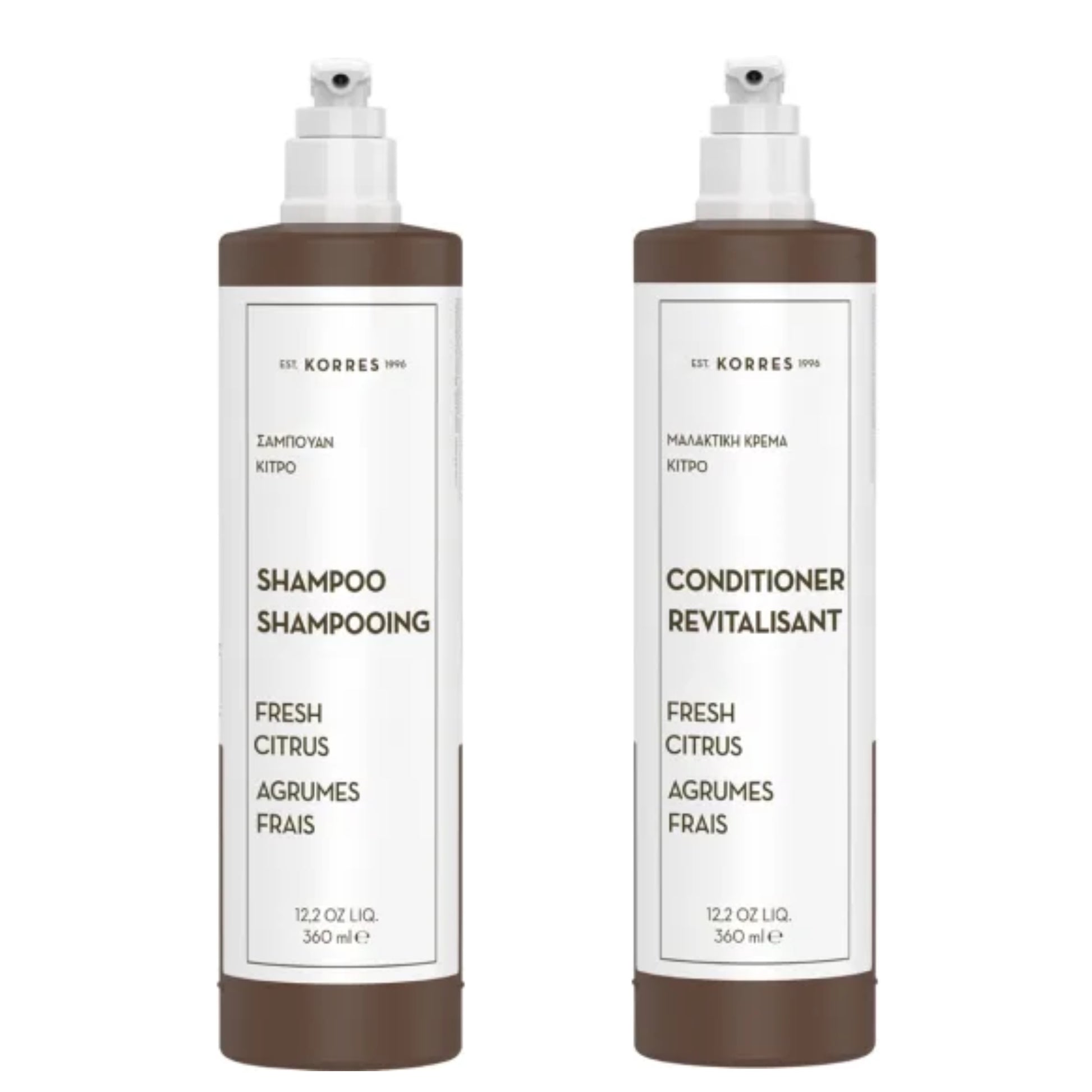 - Korres Fresh Citrus Shampoo & Conditioner is a set of 2 bottles, each containing 360ml (12.2oz) of product, ensuring you have plenty to last.